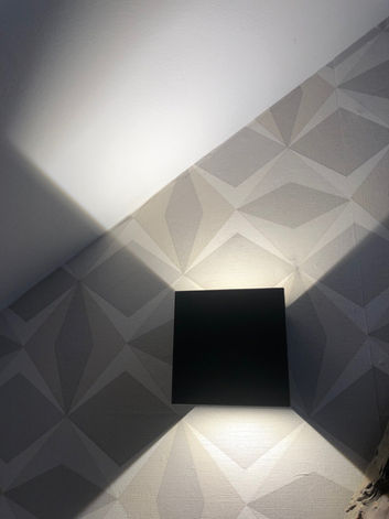 Le reste, les rambardes, les contremarches ont été repeintes dans un gris très clair et une partie du mur qui accompagne la montée a été recouvert d'un papier peint imprimé de motifs géométriques scandinaves. Une étroite planche en chêne clair a été fixée dans la montée d'escalier pour faire office de petite étagère et disposer quelques plantes vertes et autres éléments de décoration.